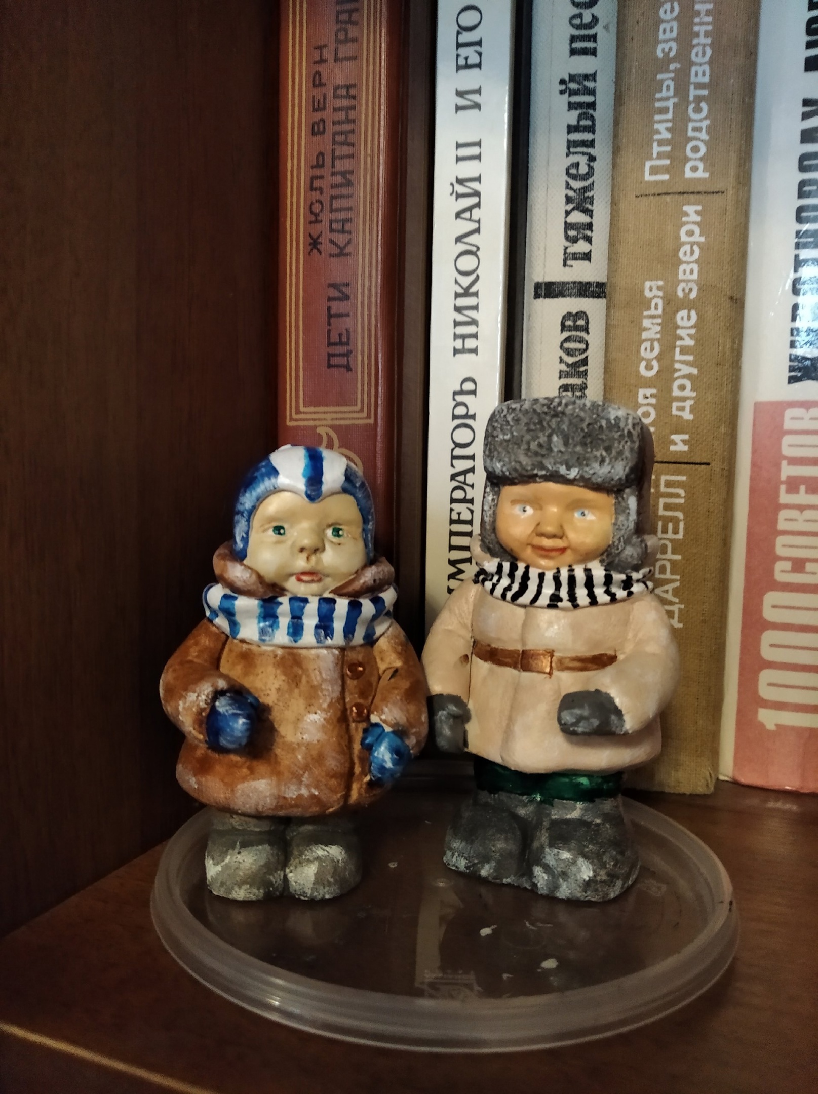 В сентябре, в музее Гайдара, в Клину, купил двух гипсовых пацанов. Специально взял нераскрашенных (чем удивил работницу музея). Вот сегодня дораскрасил.