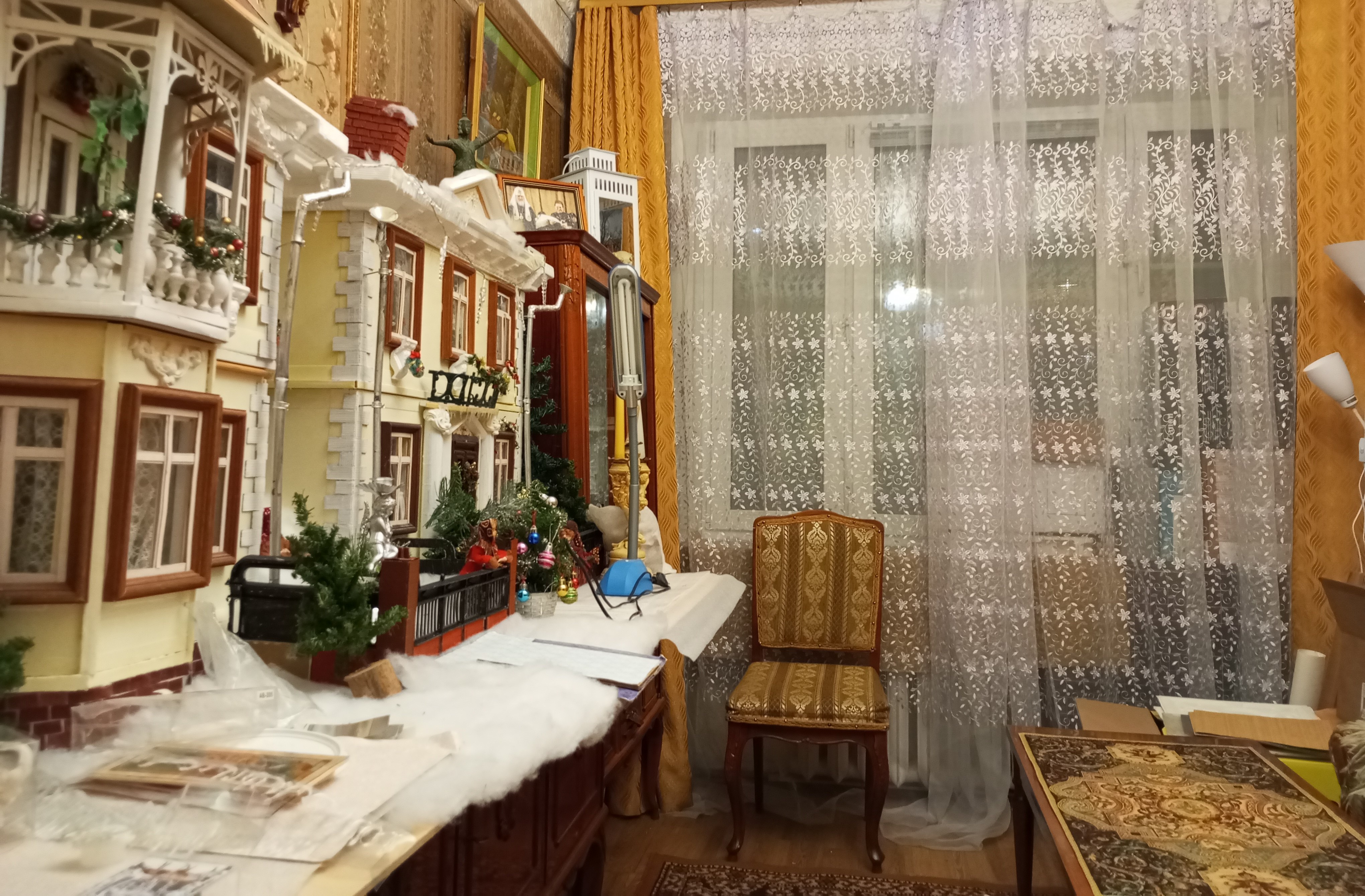Моя мастерская. Две половинки дома, поставленные рядом, составили небольшой фрагмент улицы. А вот с фото не получается...